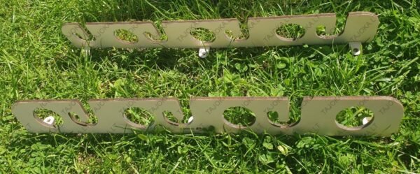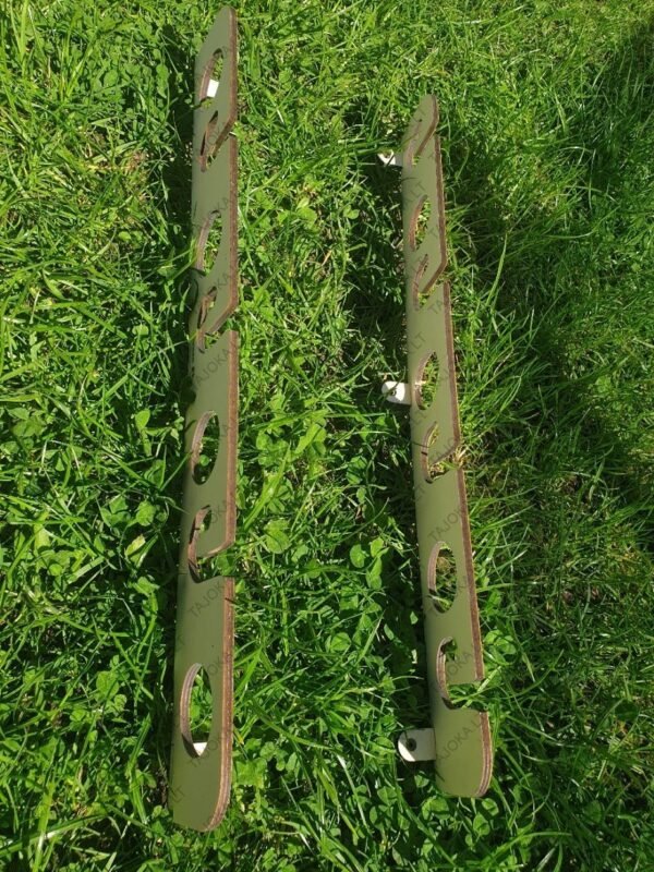 Meškerių laikiklis 7 meškerėms, pagamintas iš 6mm. faneros, tvirtinamas prie sienos arba lubų.